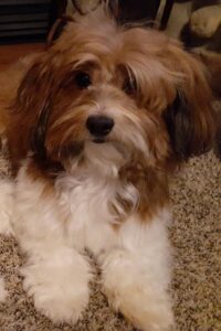 Akc Havanese Ricky is a stud from another breeder that we have had the privilege to use. He has gorgeous red and white markings, a soft coat and sweet temperament. He weighs 10lbs.