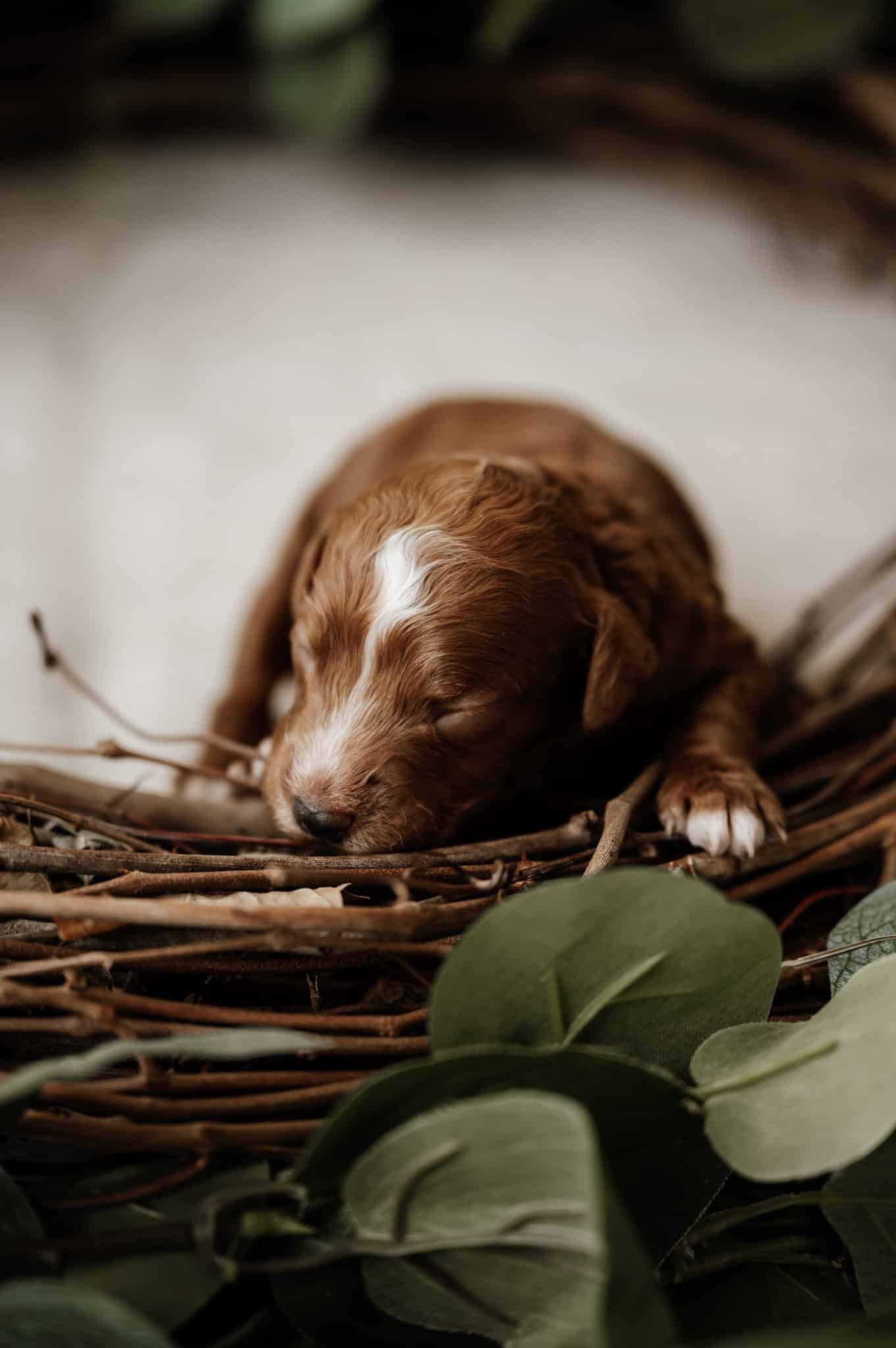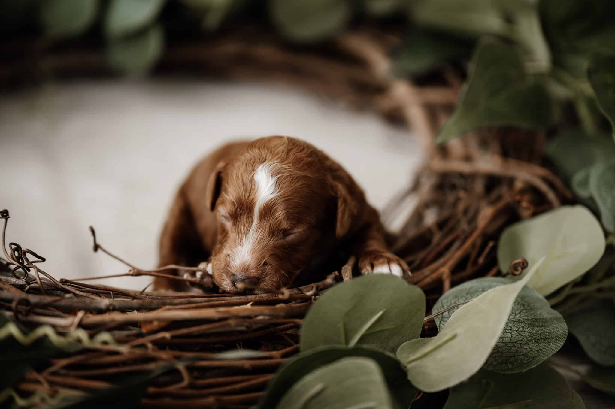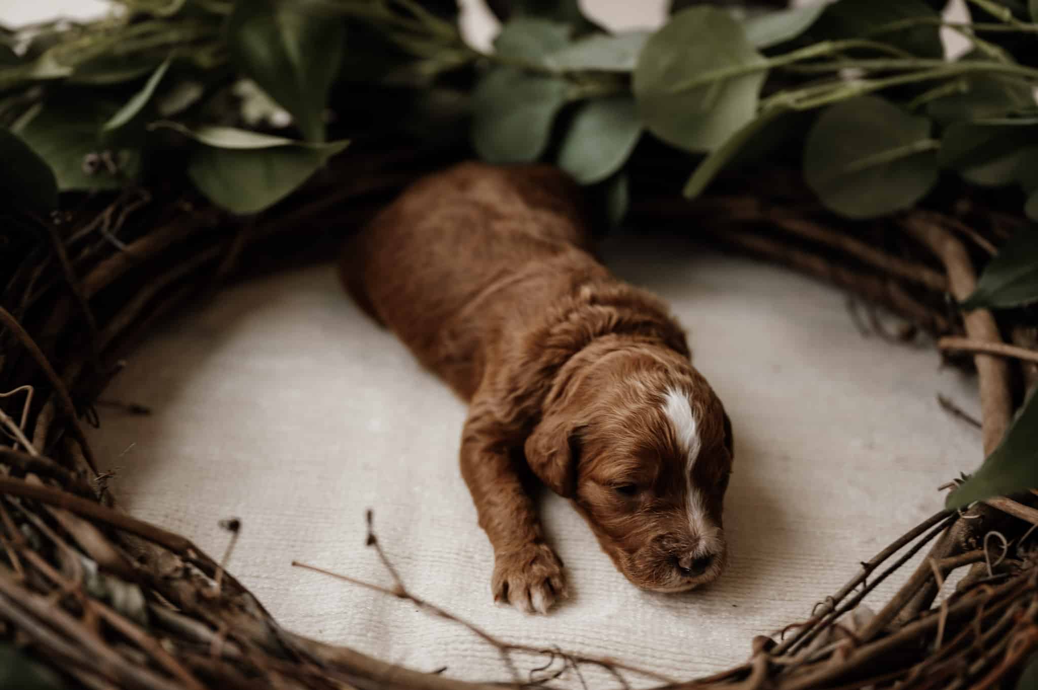 GOLDENDOODLE – Meet Prince – Born June 5th 2023. He is a beautiful red & white tuxedo Goldendoodle that will just melt your heart. His price is $2,000