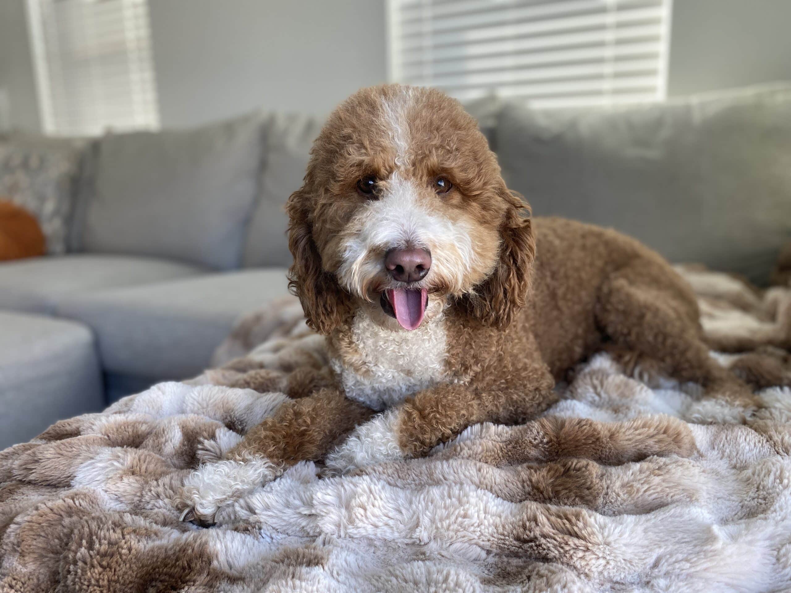 GOLDENDOODLE – Meet Poppy, our 28lb F1bb Goldendoodle lady. She is very affectionate and cuddly.