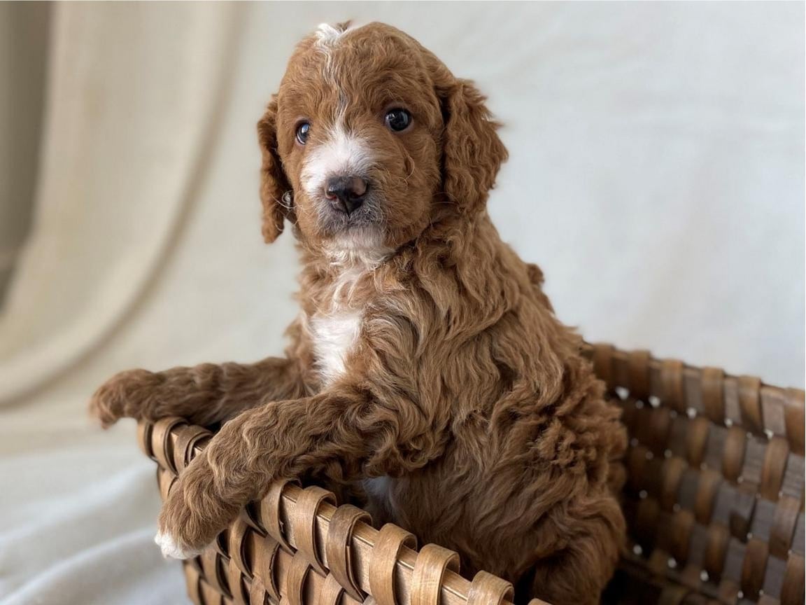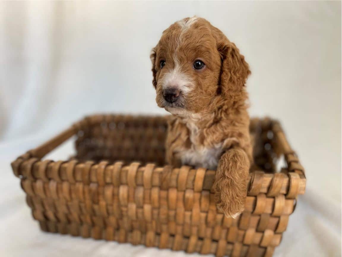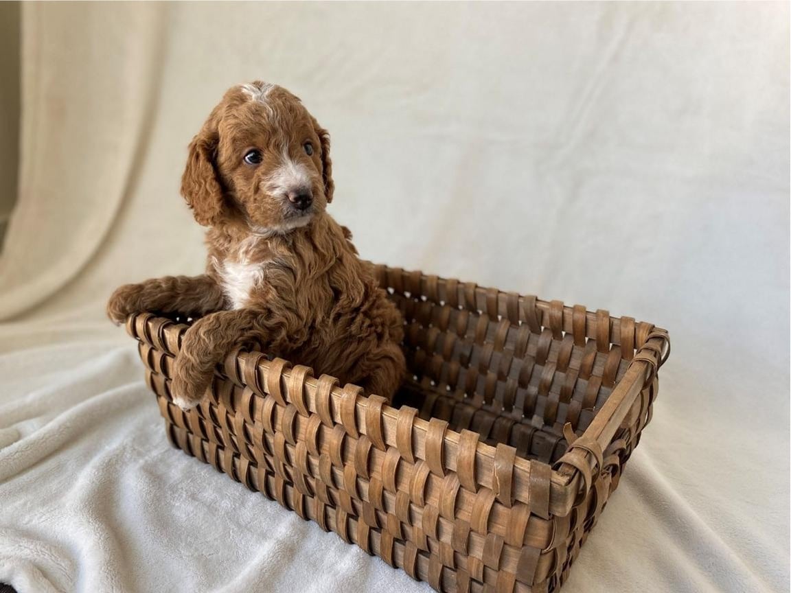 GOLDENDOODLE MINI – Meet Fredrich from the Little Women litter, Born Jan 22, 2025. He should weigh approx. 15- 20lbs.
