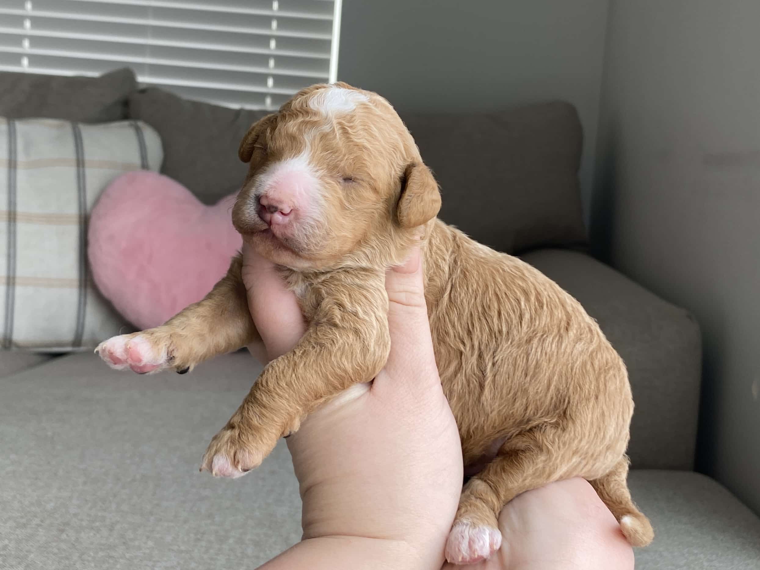 GOLDENDOODLE MINI – Meet Amy March from the Little Women litter, Born Jan 22, 2025. She should weigh approx. 15- 20lbs.