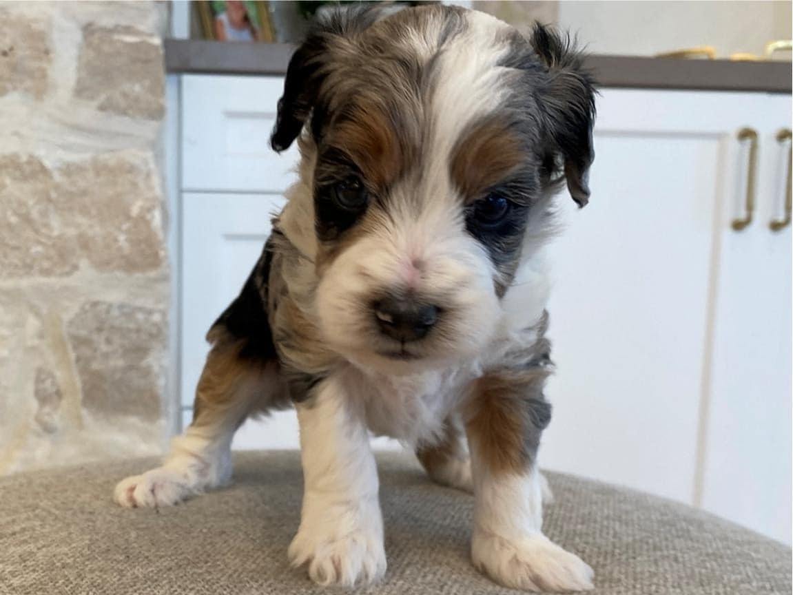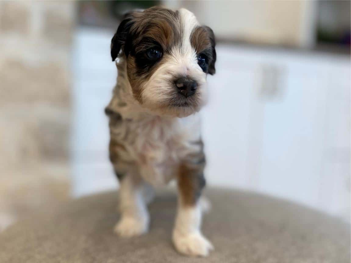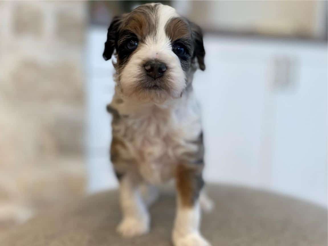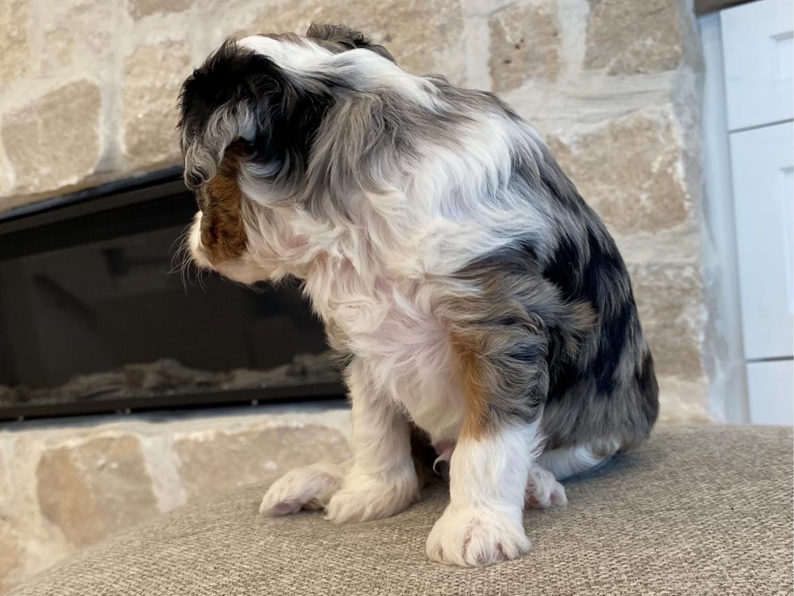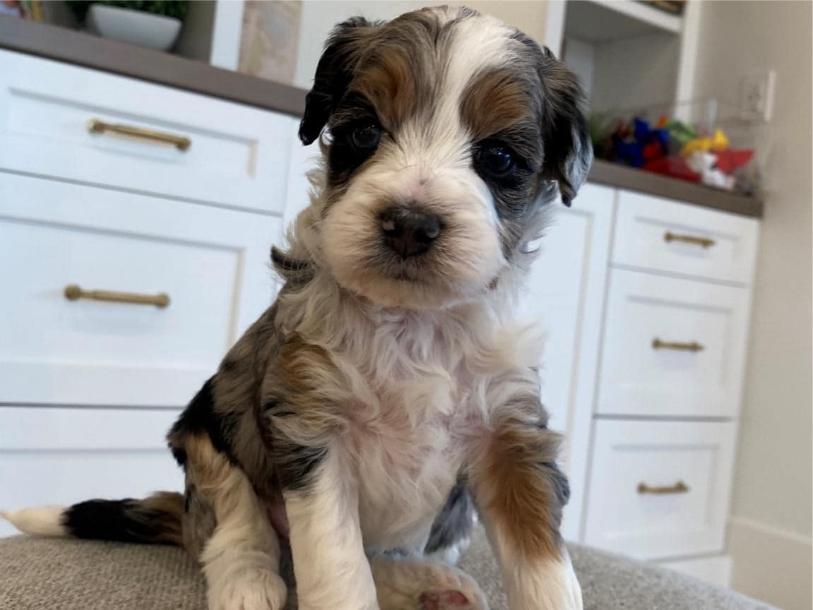 Bernedoodles are known for their hypoallergenic coat, making them an excellent choice for individuals with allergies. Lord Farquaad’s coat is a beautiful Tri-Color Merle, featuring black, brown, and white patches, giving him a truly unique and striking appearance. With proper grooming, Lord Farquaad’s coat will stay looking its best and minimize shedding, making him a perfect fit for those who want a low-maintenance pet.