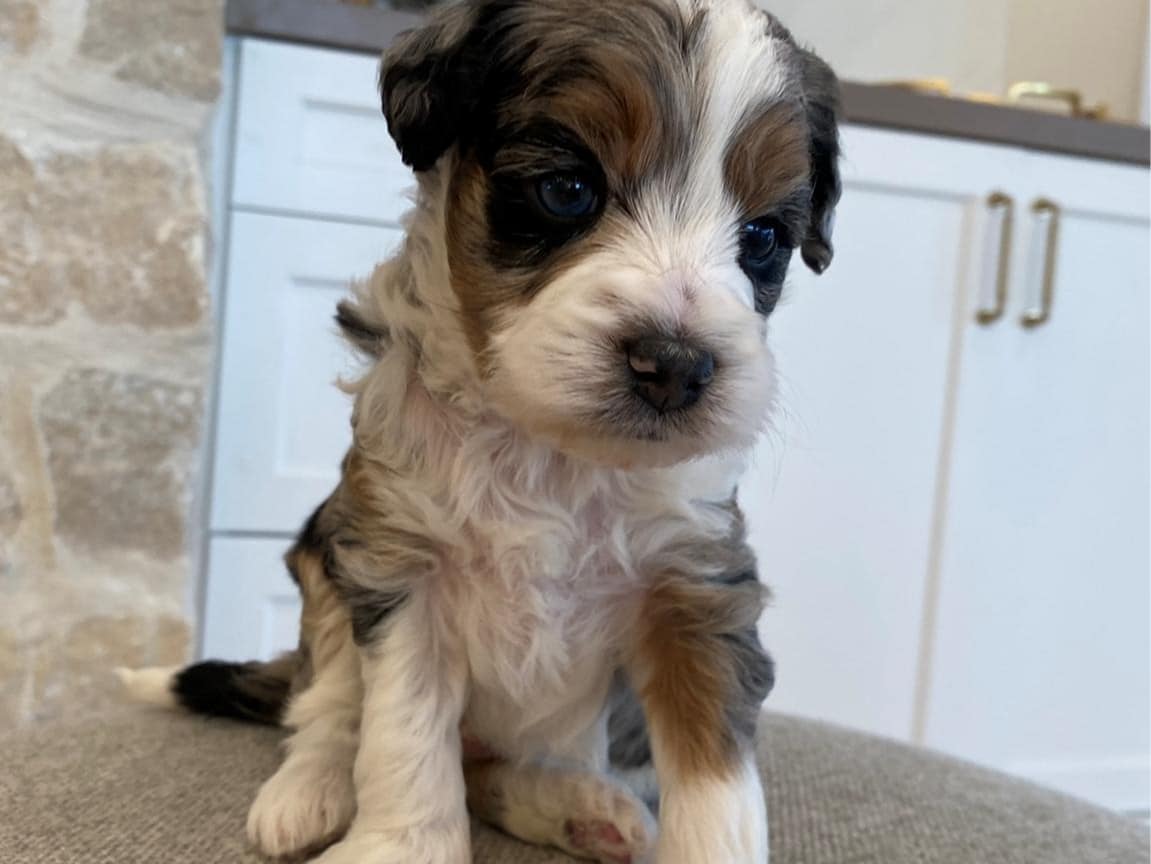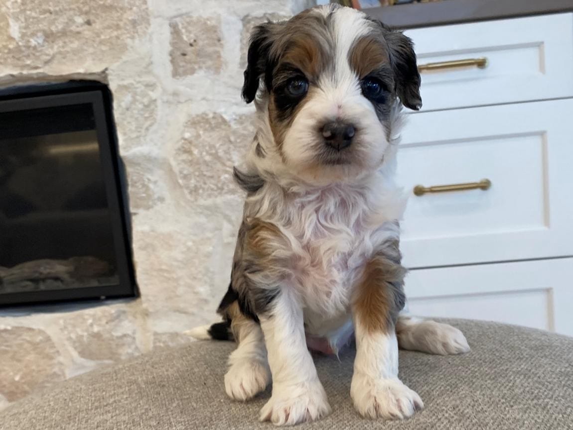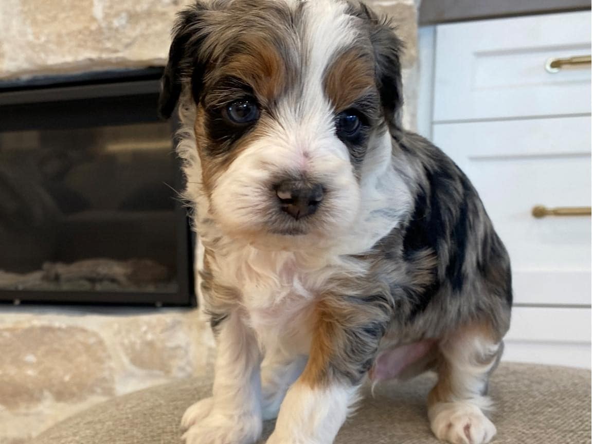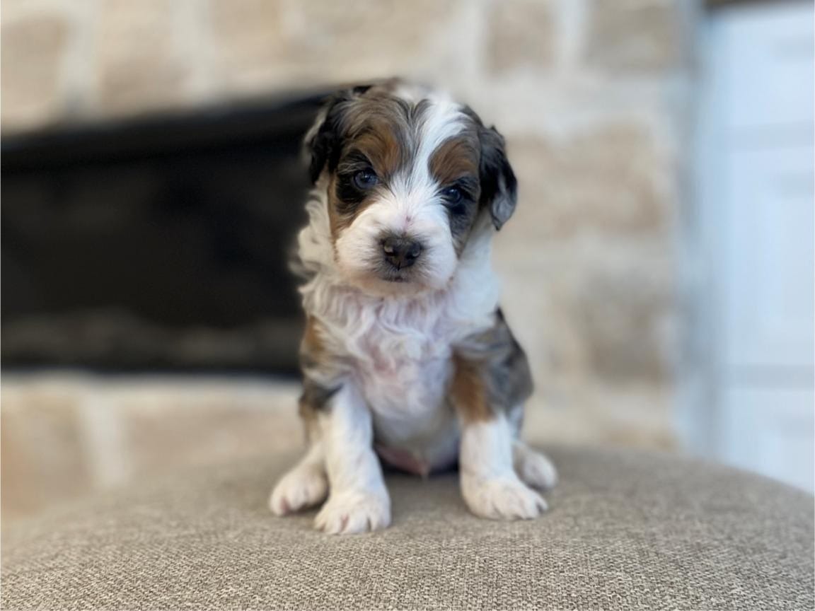 Meet Lord Farquaad, a stunning and charming Tri-Color Merle Tuxedo Bernedoodle born on February 4th, 2025. This adorable pup is ready to steal your heart and become your new best friend. With his captivating appearance and affectionate nature, Lord Farquaad is the picture of perfection.