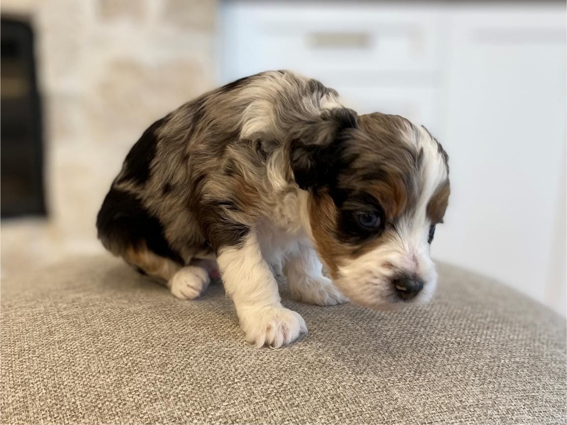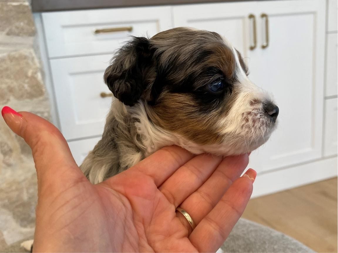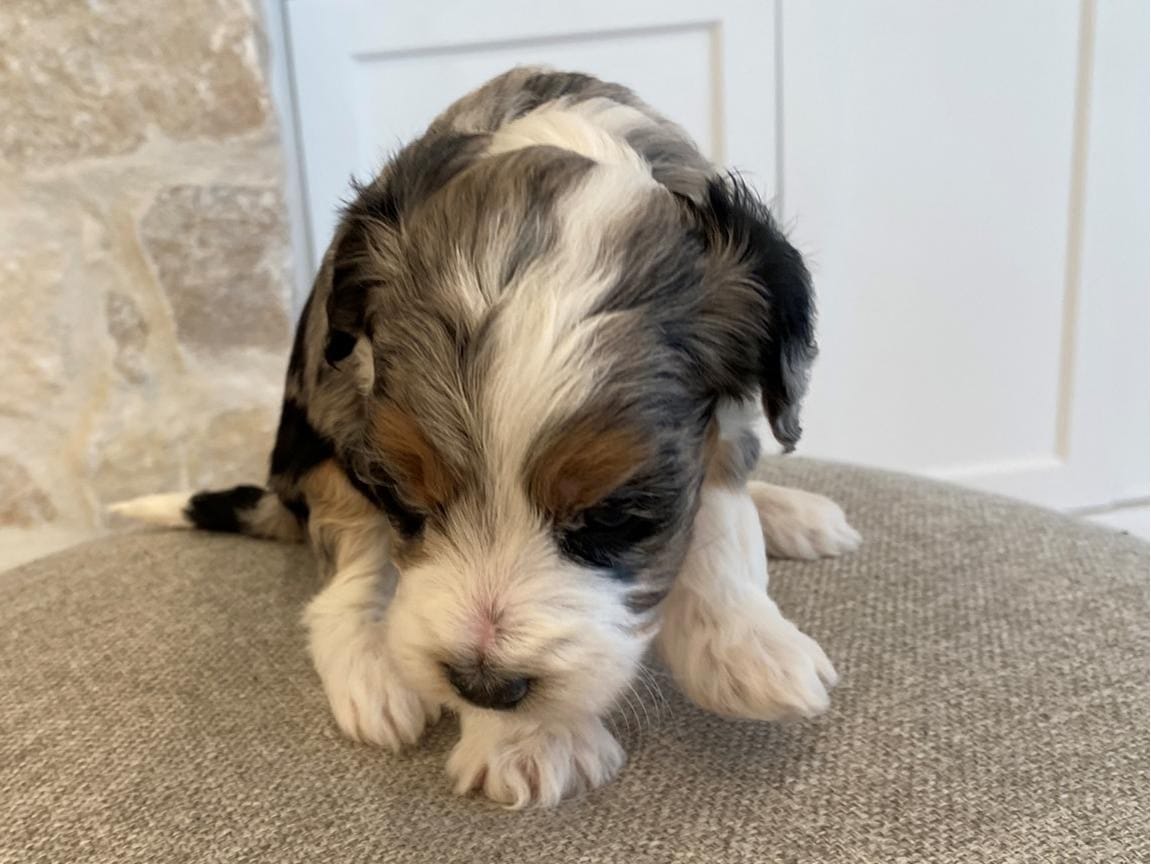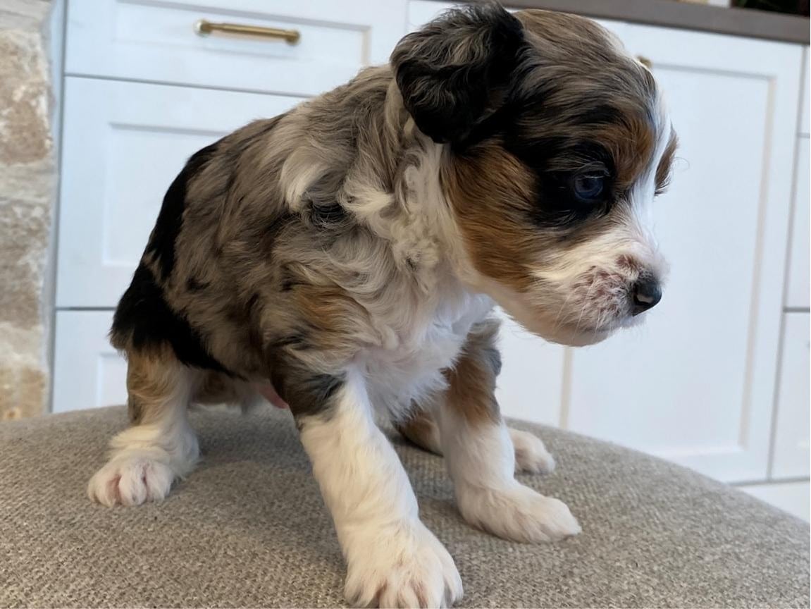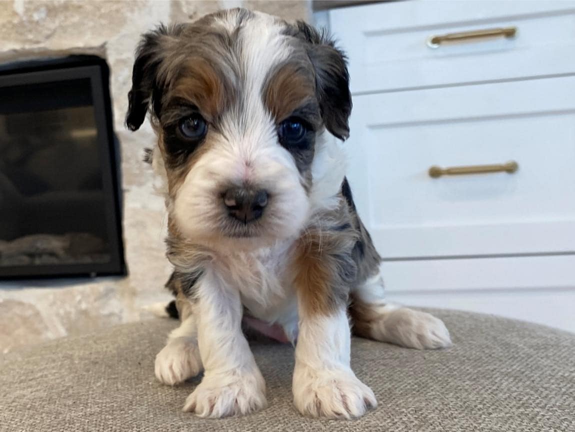 Meet Lord Farquaad, a stunning and charming Tri-Color Merle Tuxedo Bernedoodle born on February 4th, 2025. This adorable pup is ready to steal your heart and become your new best friend. With his captivating appearance and affectionate nature, Lord Farquaad is the picture of perfection.