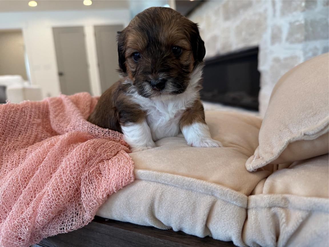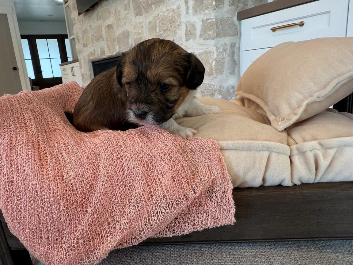 Pixie is an adventurous pup who loves to explore her surroundings and play with her littermates. Sheâs full of charm and energy, always ready for fun, yet still has that sweet Havapoo side that enjoys snuggling up after playtime. Pixie will make a wonderful addition to a loving home looking for both affection and playfulness.