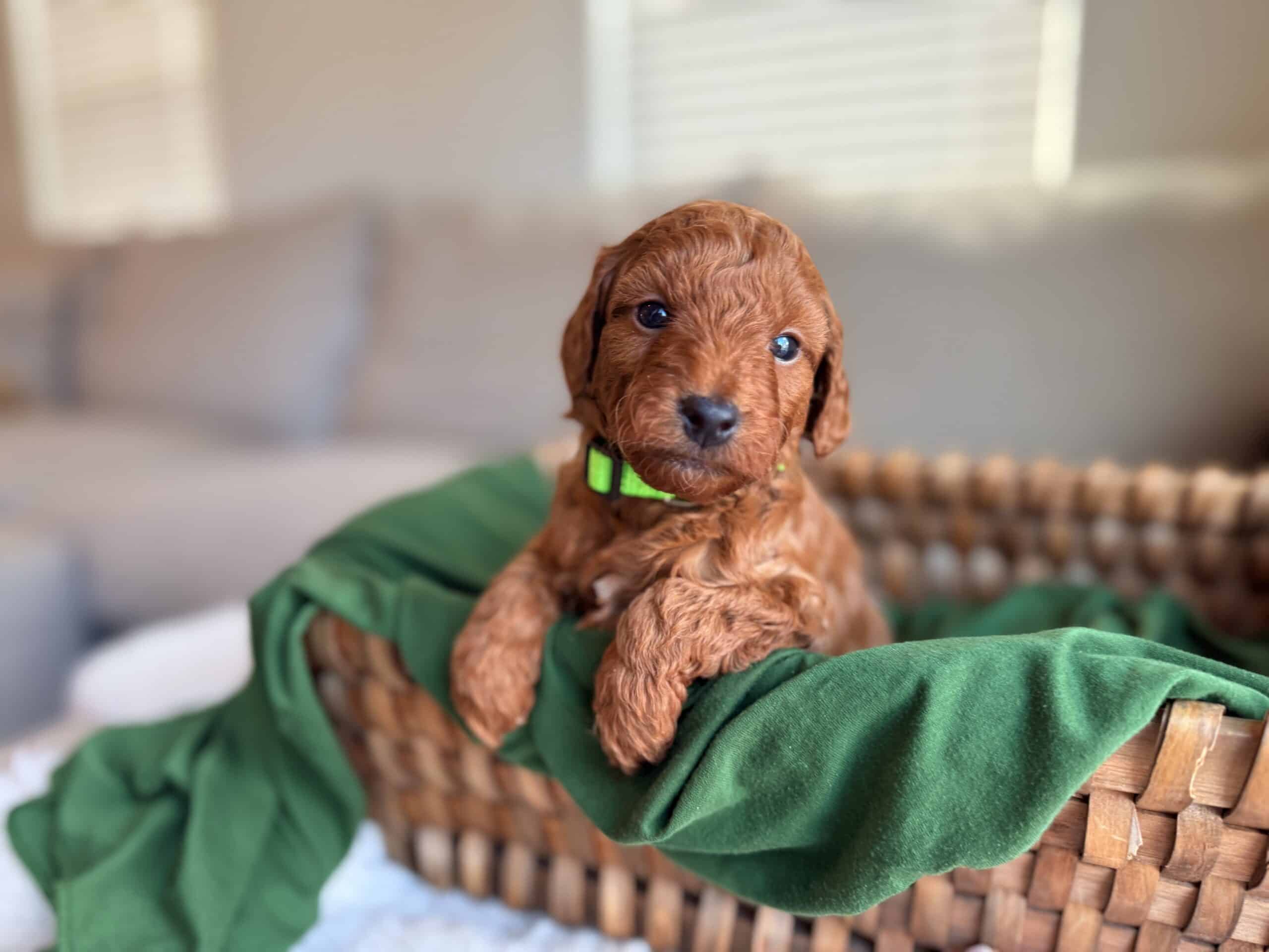 Goldendoodles vary in size depending on whether their Poodle parent was standard, miniature, or toy-sized. They can range from 15 to 90 pounds and stand between 13 to 24 inches tall. Known for their athletic build, long ears, and expressive faces, Goldendoodles have an adorable charm. Their coats can be wavy or curly and come in a wide variety of colors, including cream, gold, apricot, red, black, and even parti or merle patterns. With their wagging tails and soulful brown eyes, Goldendoodles are undeniably captivating.